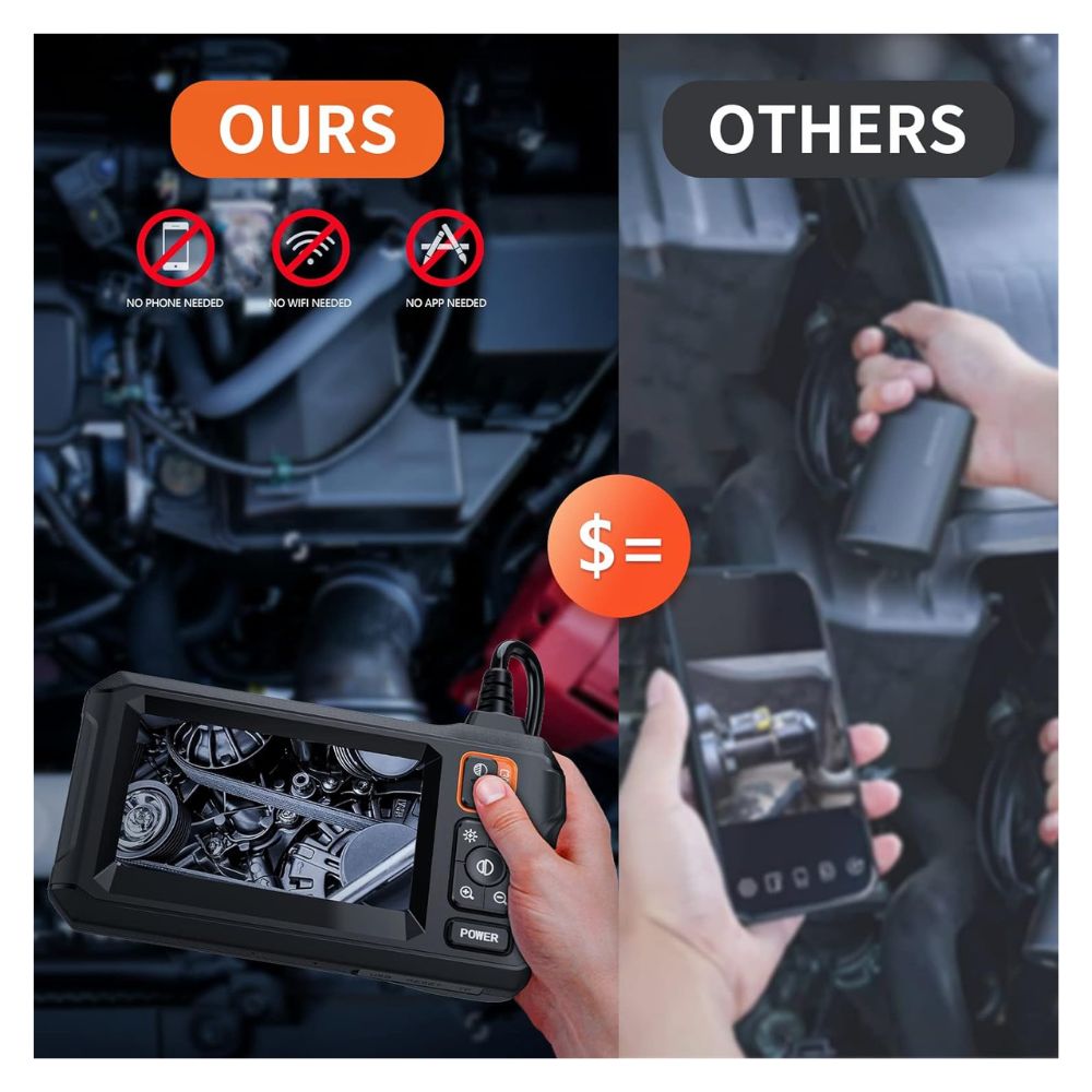 - Ahorra tiempo y dinero: esta es una excelente herramienta para el mantenimiento del automóvil, inspecciones del hogar, instalación eléctrica, reparaciones de HVAC y bricolaje en el hogar. La cámara endoscopio de 0.315 in puede pasar fácilmente a través del orificio de la bujía para inspeccionar la cámara de combustión del motor. Alternativamente, simplemente taladre un agujero en la pared para entrar en la pared interior para verlo, ahorrando el problema de dañar la pared.