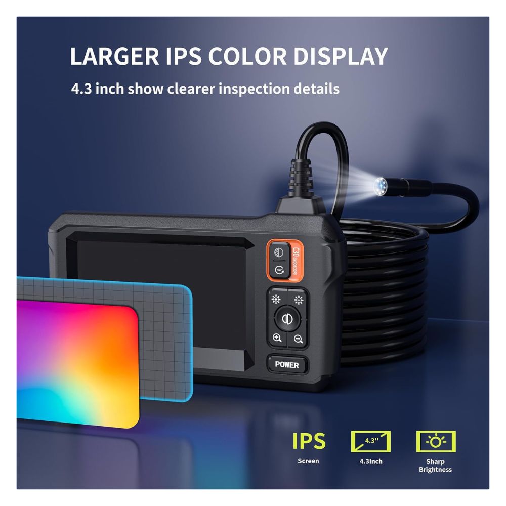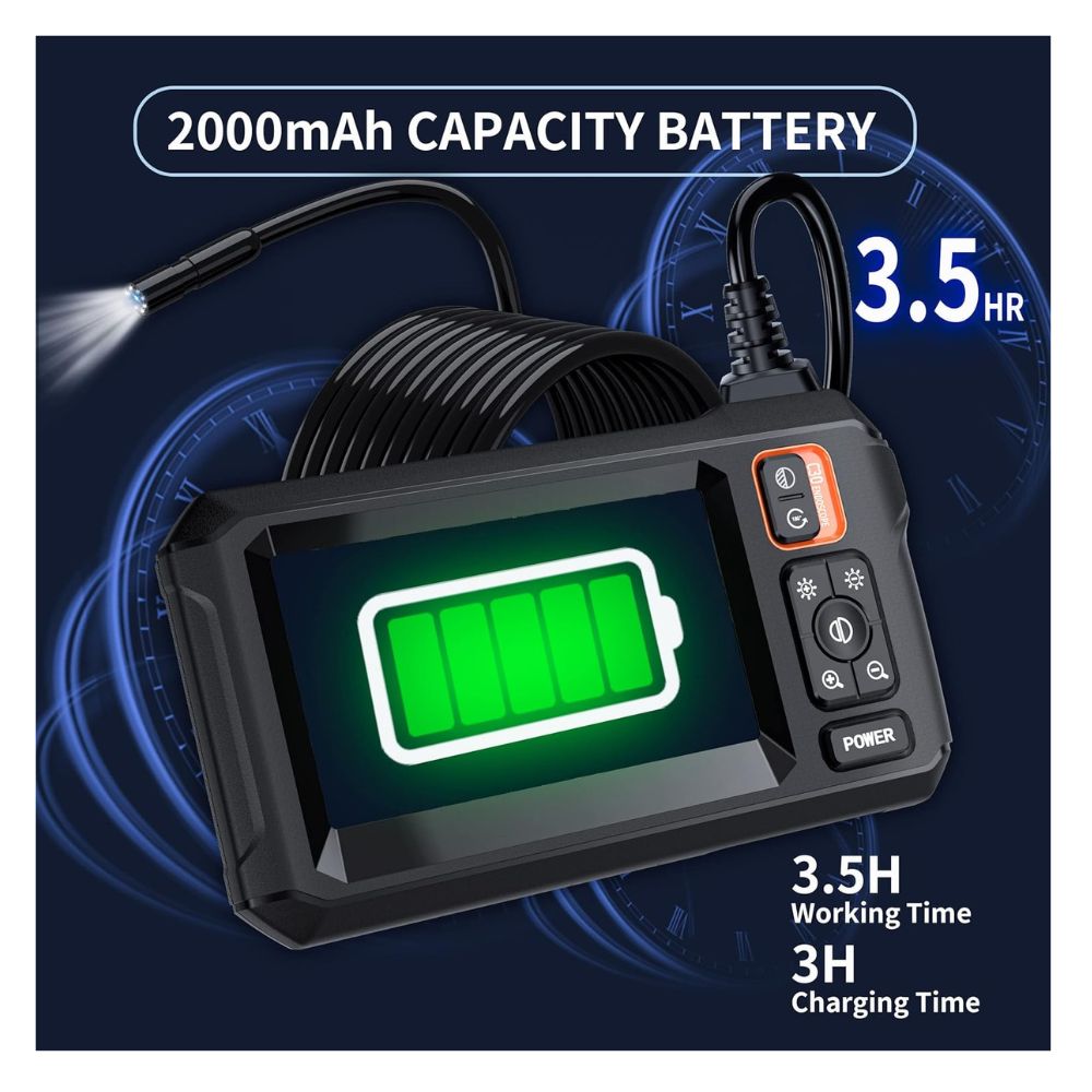 - Resistente al agua IP67: el boroscopio tiene clasificación IP67 resistente al agua para su uso en condiciones climáticas inclemente y ambientes húmedos. La sonda de cámara de serpiente utiliza un conector aeroespacial que es seguro para usar en piscinas, plomería y lluvia.