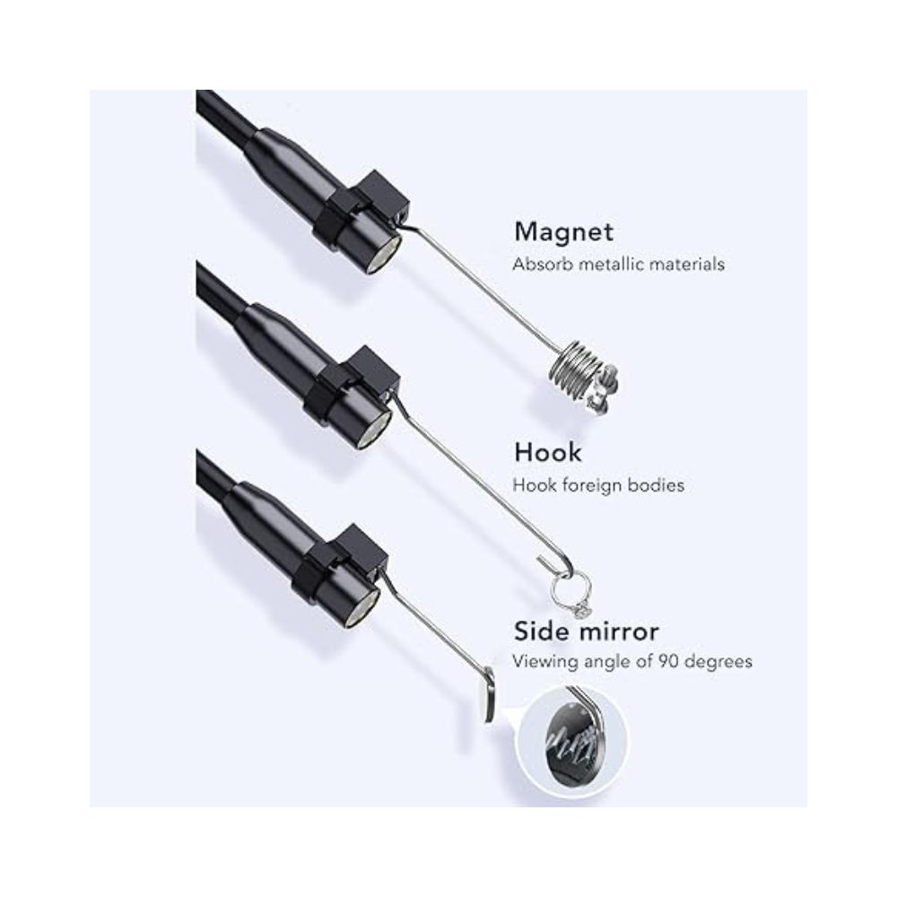La cámara del endoscopio se puede utilizar inmediatamente después de encenderla, no es necesario usar un teléfono inteligente para conectarse a Wi-fi y no es necesario descargar ningún software de controlador, así que tampoco tienes que preocuparte por ensuciar tu costoso teléfono en el trabajo.