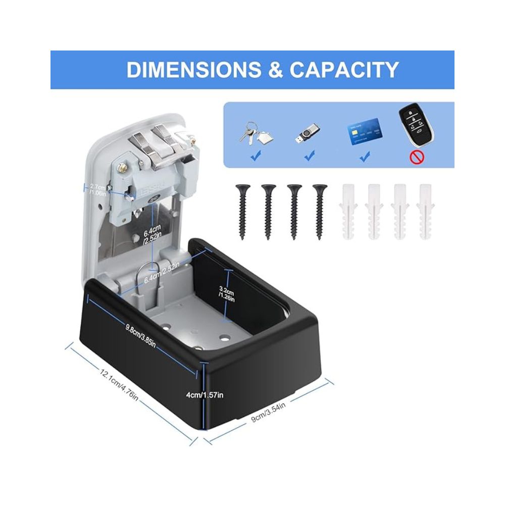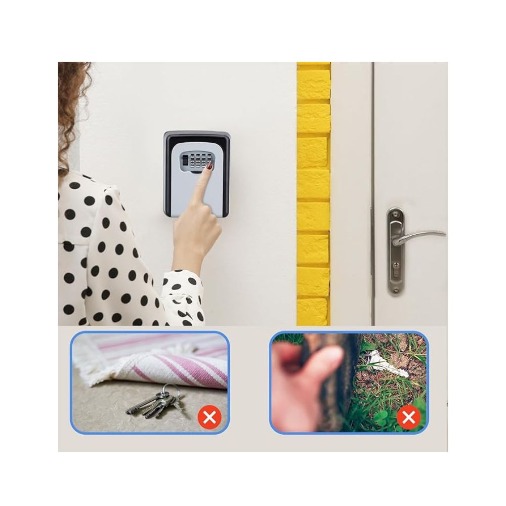 Facil uso: Con todos los herrajes de montaje incluidos y los orificios pre taladrados, es muy fácil fijar la caja de seguridad para llaves de pared para exteriores a cualquier superficie sólida. Solo cuatro pasos para configurar y restablecer la combinación de 4 dígitos. Siempre se incluyen instrucciones. Tenga en cuenta que NUNCA olvide su contraseña, ya que no será posible usar ni restablecer la caja de seguridad para llaves de pared con combinación. Se recomienda tomar una foto o anotarla después de configurar un nuevo código.