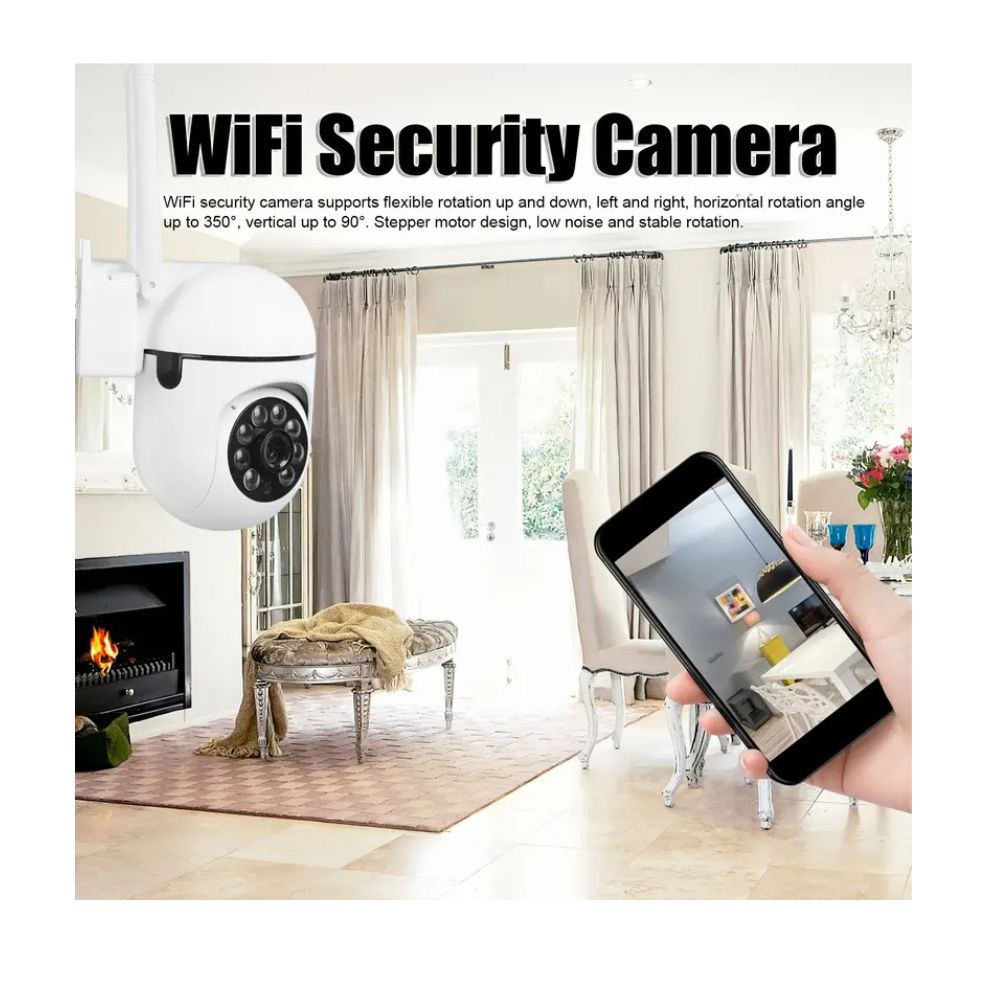La cámara de vigilancia inalámbrica WIFI está diseñada con rotación vertical de 90 grados y horizontal de 360 grados para admitir la visualización en tiempo real de su teléfono con la aplicación gratuita.