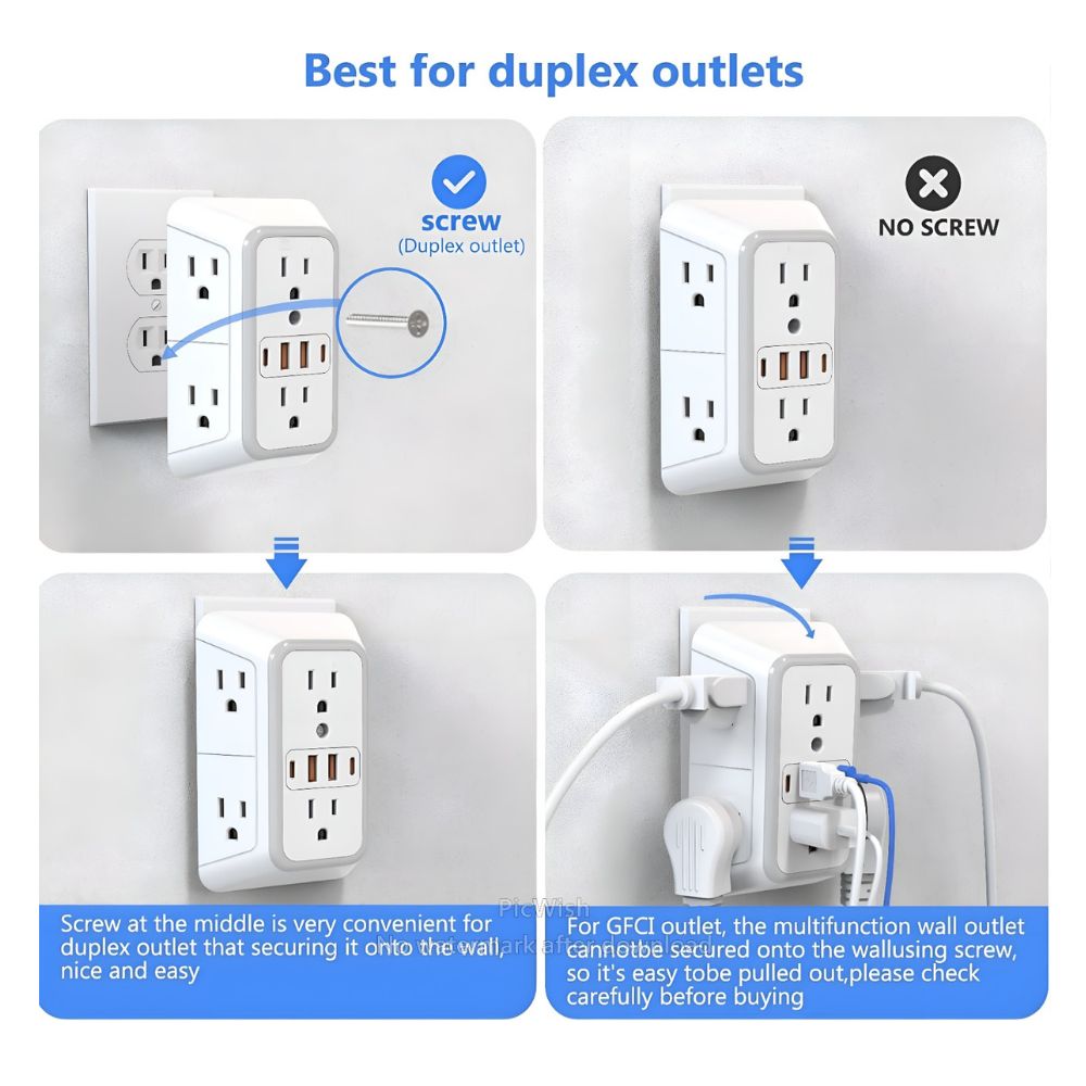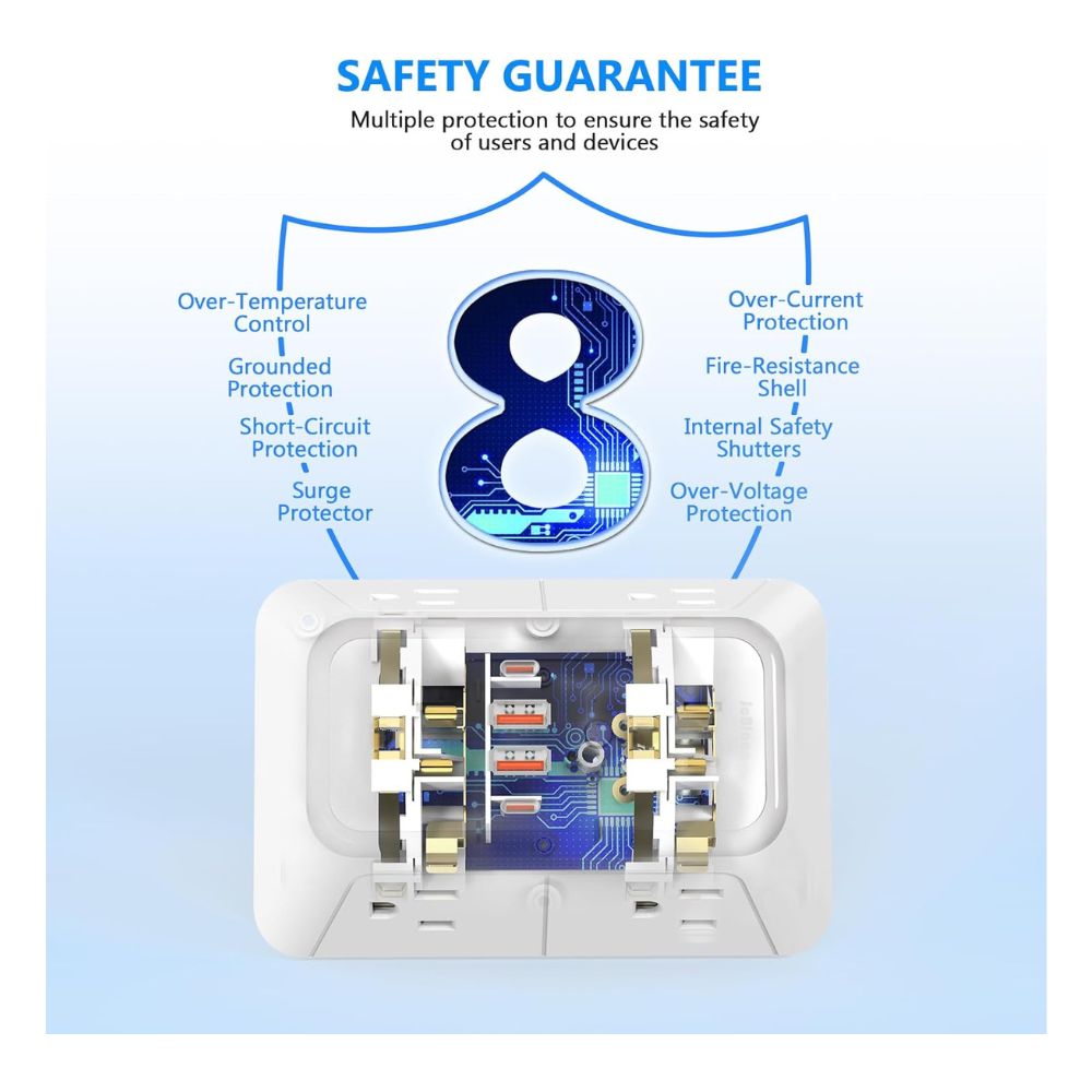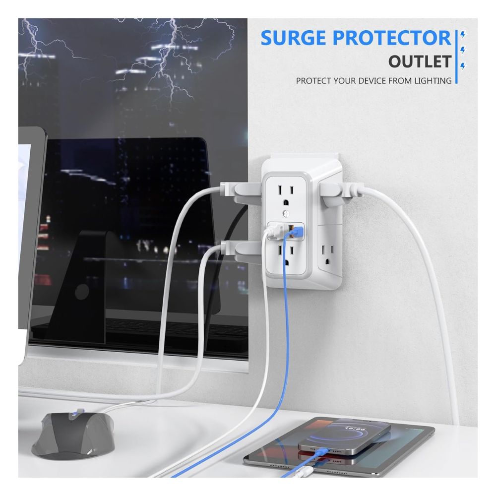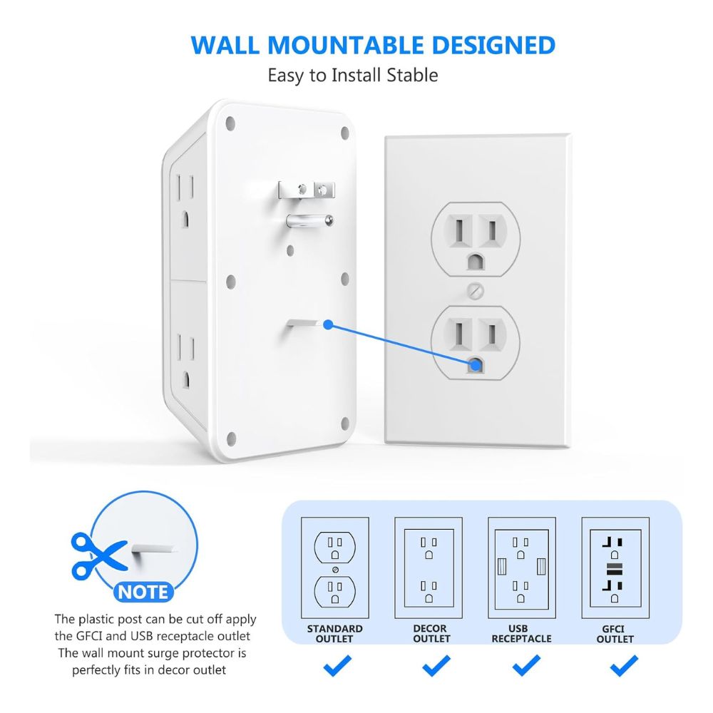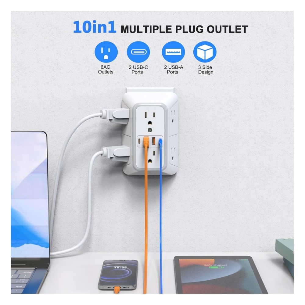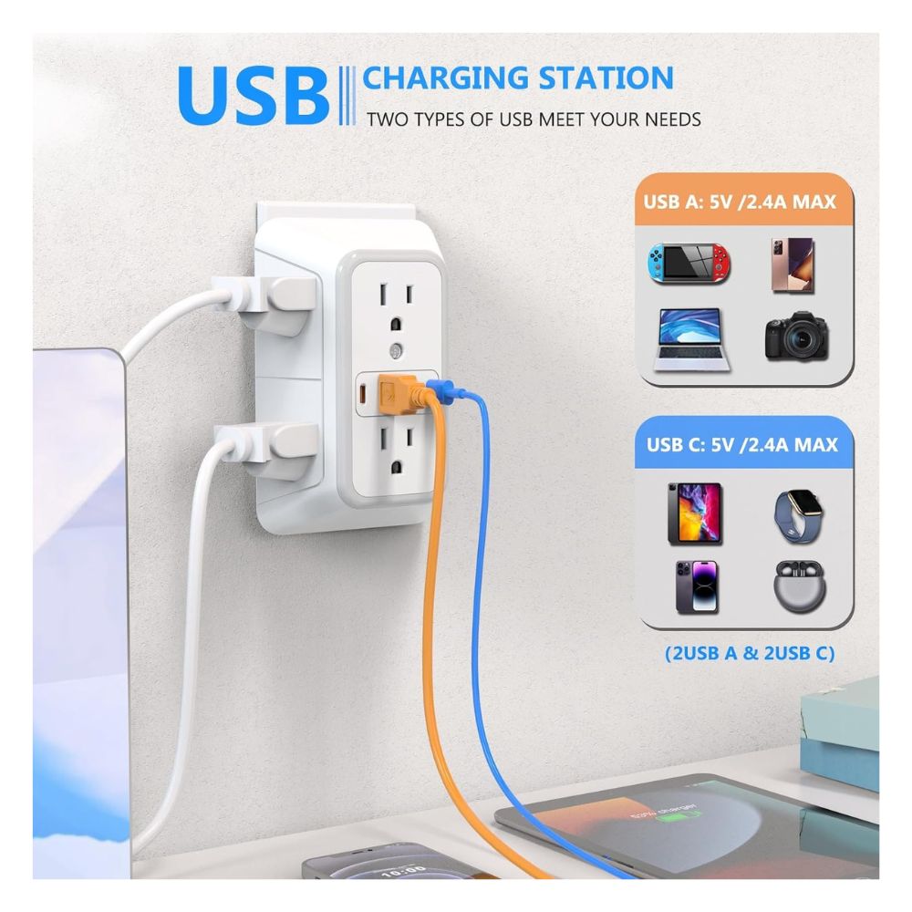 🔌 Protector de sobretensiones : con protección contra sobretensiones de 1050 julios, este enchufe de pared multienchufe puede proteger tu TV, computadora, laptop u otros electrodomésticos de sobretensiones, creando tranquilidad y hecho de material ignífugo ul94 v-0 de alta calidad, garantiza tu seguridad eléctrica.