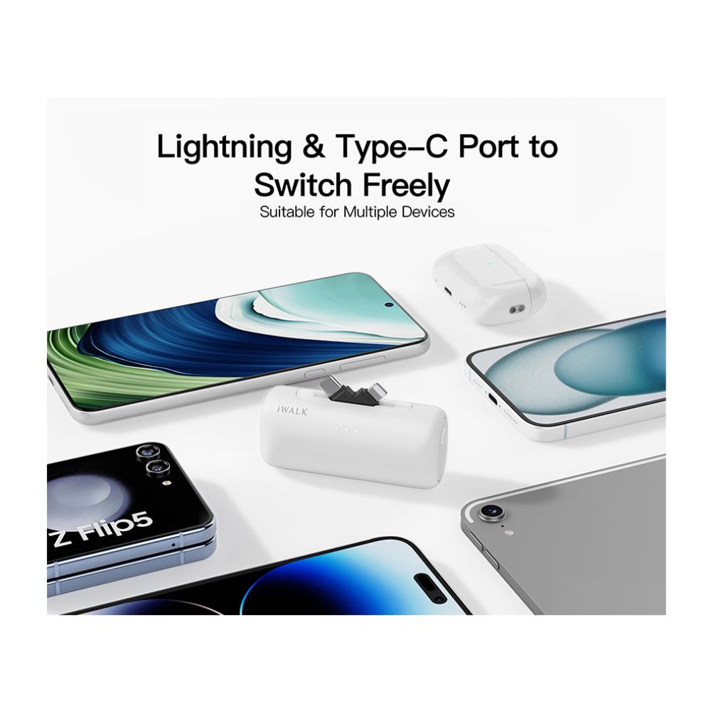 Cargador Portátil iWALK 2 en 1 Enchufe Lightning & USB C Integrado📲