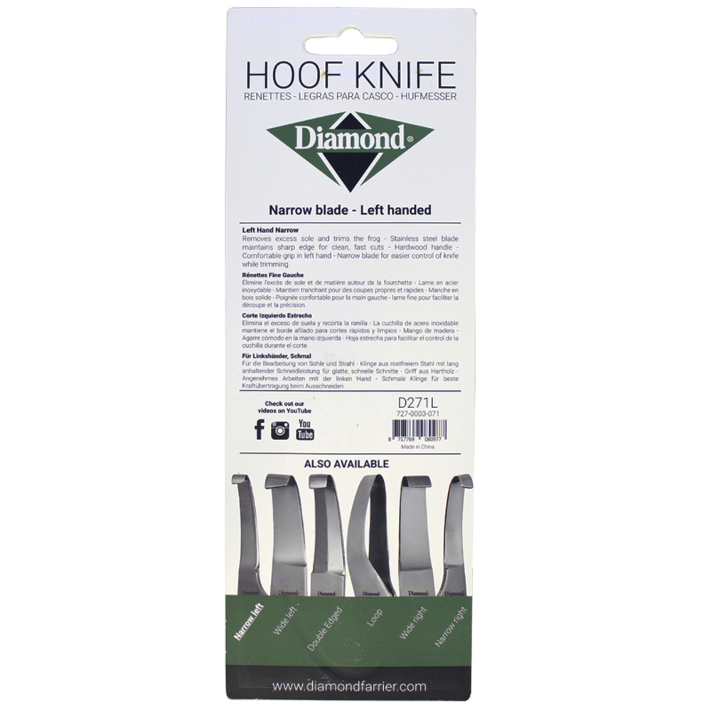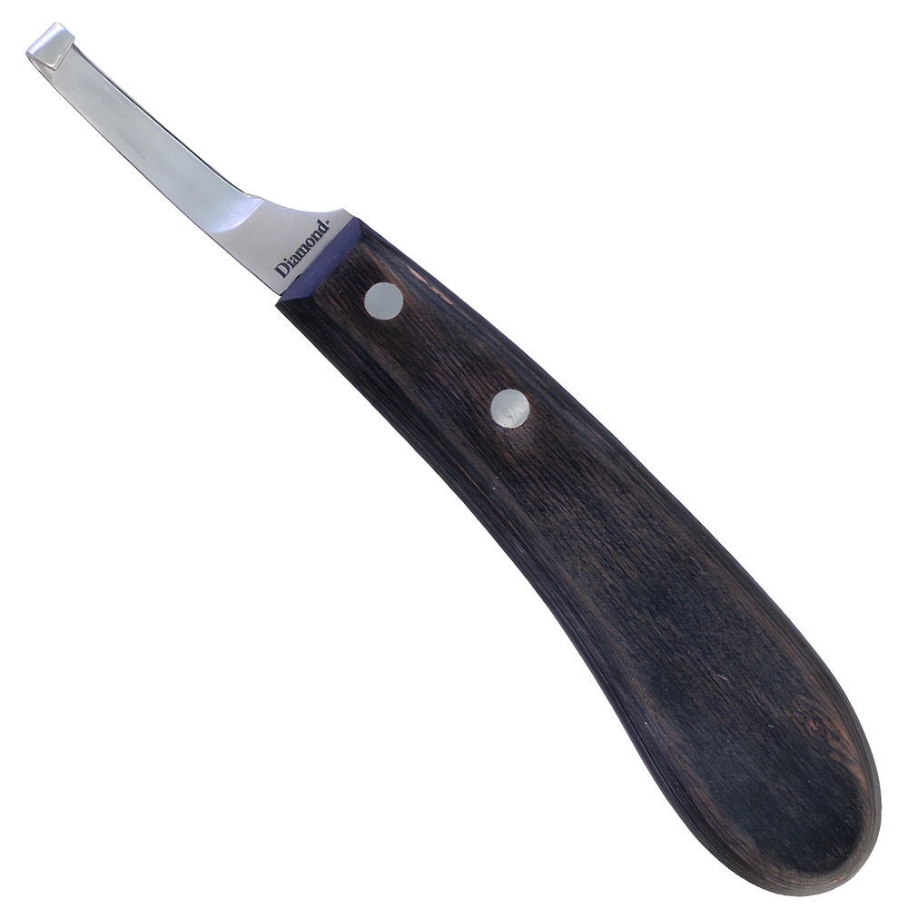 El cuchillo Diamond Farrier Narrow Left está diseñado especialmente para el recorte de la pata izquierda. Su hoja estrecha de acero inoxidable de alta calidad mantiene un filo duradero, lo que permite realizar cortes limpios, precisos y eficientes para eliminar el exceso de suela y limpiar la ranilla. El mango ergonómico de madera dura está diseñado para ofrecer un agarre cómodo y seguro durante su uso, reduciendo la fatiga y mejorando el control. Esta herramienta es ideal para herradores, veterinarios y técnicos que buscan un instrumento confiable para el cuidado y mantenimiento de cascos en caballos, ganado y otros animales con pezuñas.