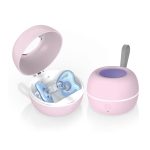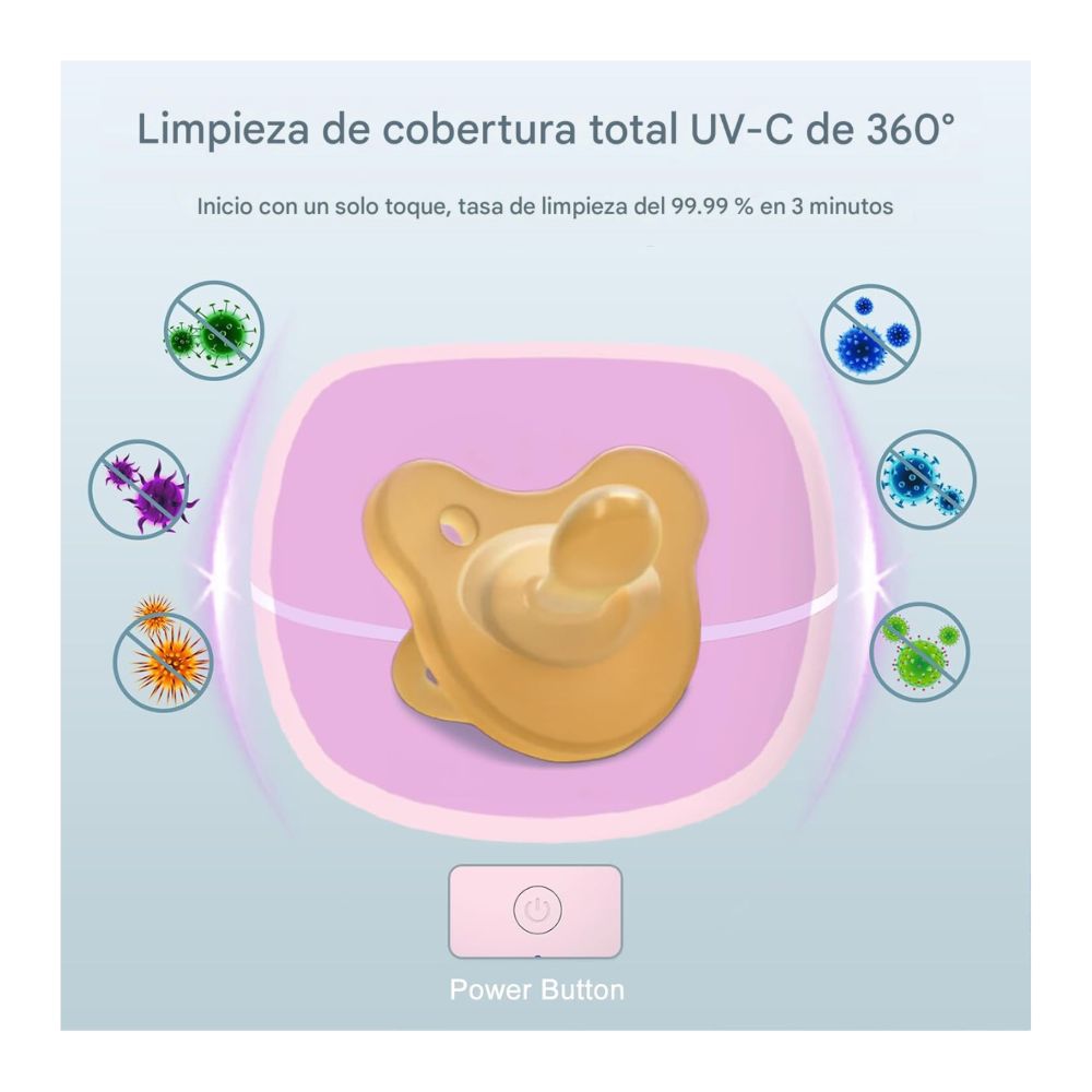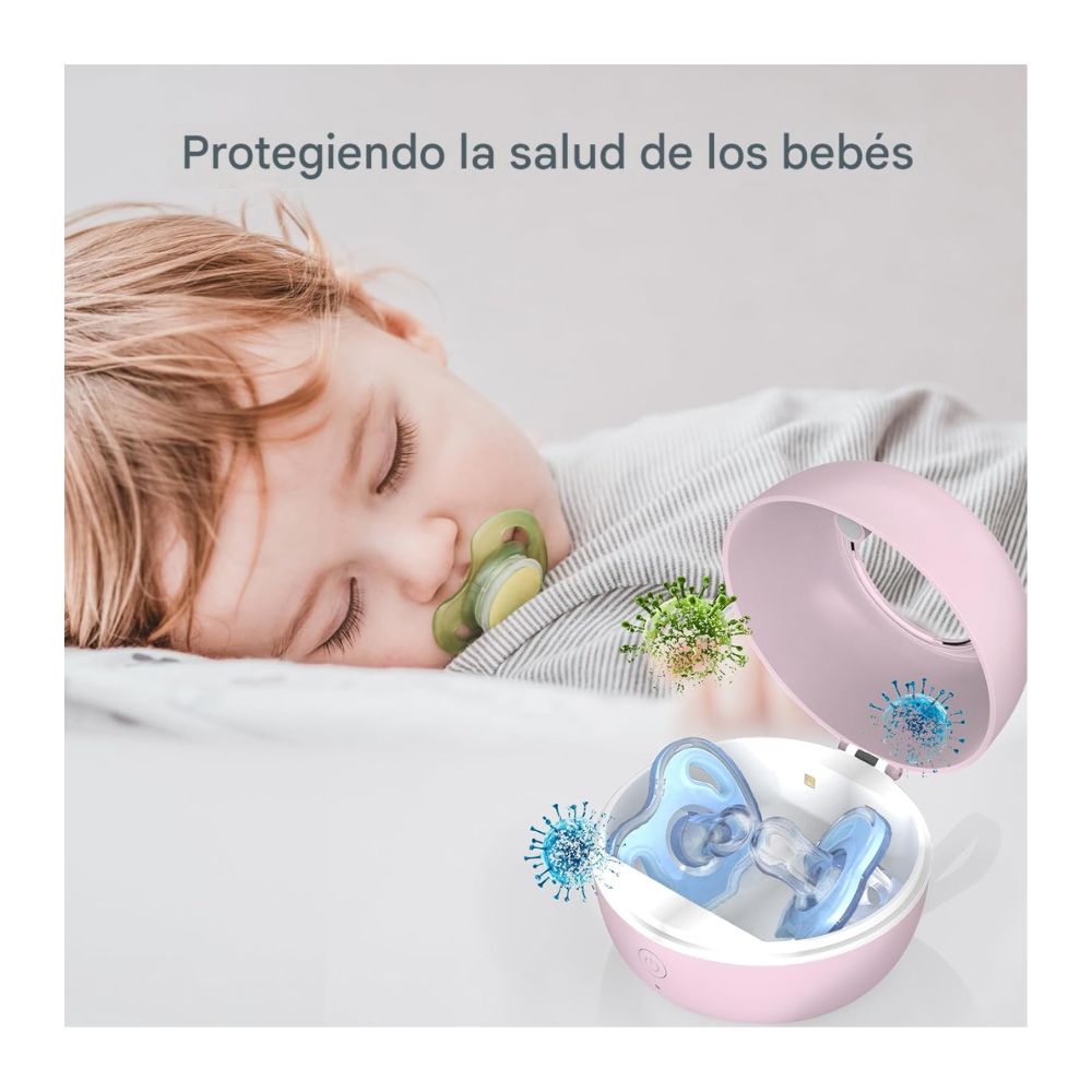 👶 Con su diseño compacto, nuestro desinfectante para chupetes es fácil de transportar y se adapta perfectamente a un cochecito, en una bolsa de pañales o en tu mano. Garantiza un cuidado adicional para tu bebé mientras viaja, proporcionando chupetes limpios en cualquier momento y en cualquier lugar.