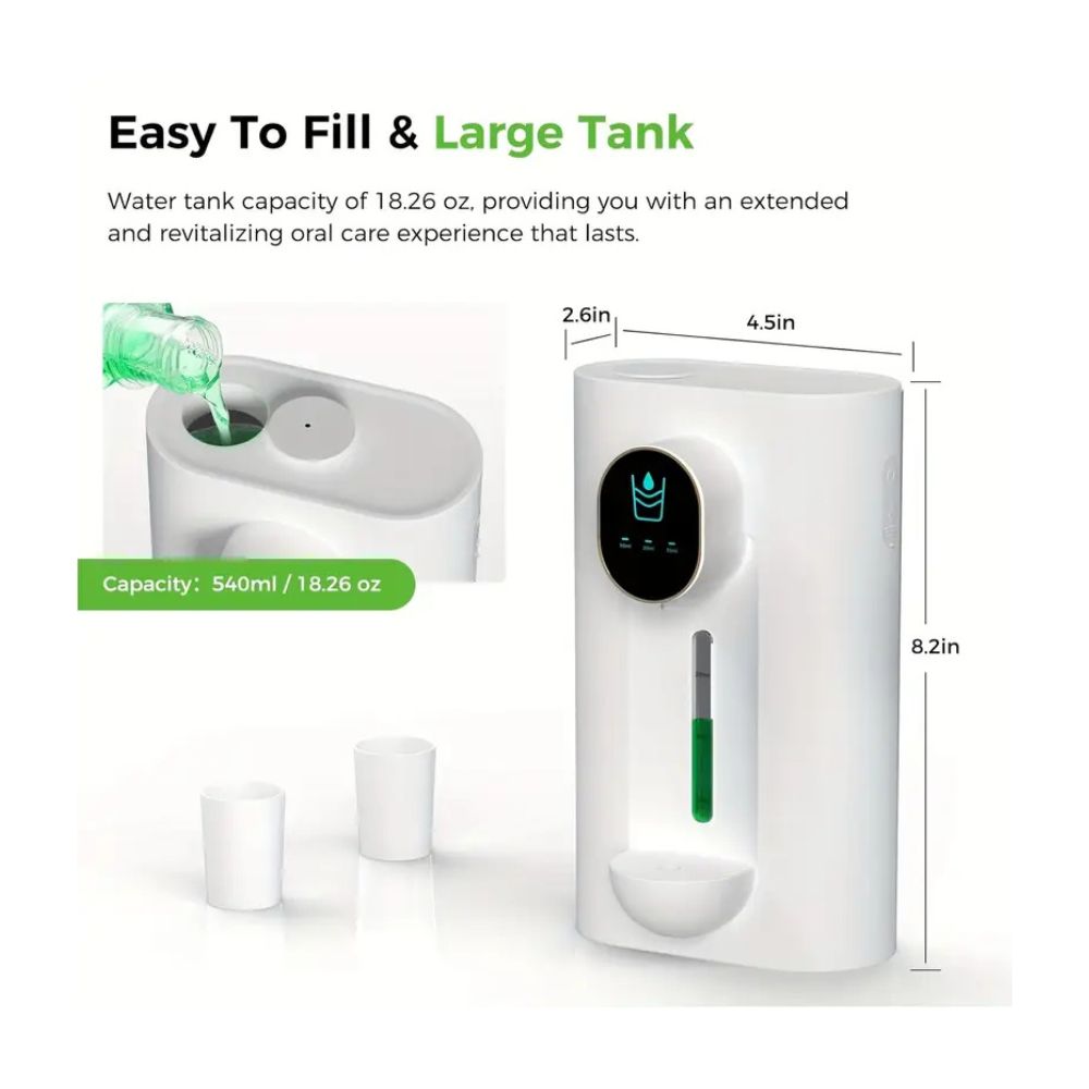 Incluye dos vasos magnéticos que se adhieren a los lados del dispensador, lo que ayuda a mantener la higiene y evita derrames o la pérdida de los vasos.