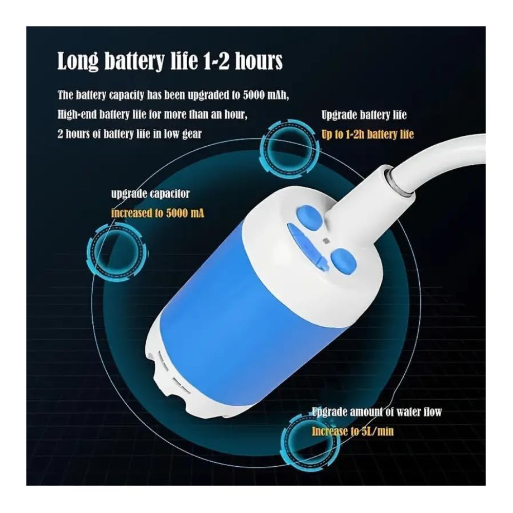 Larga duración: batería incorporada de gran capacidad de 5000 mAh, bajo consumo de energía, más de 1 hora para aguas altas y más de 2 horas para aguas bajas, que pueden satisfacer sus necesidades diarias de baño.