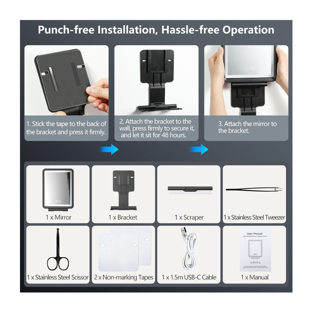 🪞Fácil de instalar el paquete de espejo de afeitado de ducha contiene 1 piezas de cinta adhesiva que no deja marcas, pega la cinta de doble cara en la pared y el soporte respectivamente, y luego cuelga el espejo en el soporte. La impermeabilidad IP66 garantiza que el espejo no tome agua cuando se ducha y aún funcionará cuando se rocía con agua.