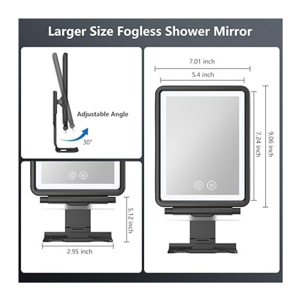 🪞Su angulo ajustable es del tamaño del marco del espejo de ducha es de 7.01 x 9.06 pulgadas, el tamaño de la superficie del espejo es de 5.4 x 7.24 pulgadas, y ángulo ajustable de hasta 30 grados para obtener la vista diferente para afeitarse, quitar maquillaje, cepillarse los dientes, etc.