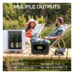 • Múltiples salidas: Hay 8 puertos de salida que pueden utilizarse al mismo tiempo, y el sistema BMS incorporado garantiza la estabilidad y la seguridad. El cable de salida del cargador de CC para automóvil (incluido) suministrará energía al refrigerador del automóvil, la aspiradora y el compresor de aire. Los puertos USB y USB C PD son compatibles con todos los teléfonos móviles (1 hora completa), tabletas (1.5 horas completas), portátiles (2 horas completas), es una unidad esencial para viajes por carretera. Los dos puertos de salida de CA alimentarán electrodomésticos, como televisores pequeños, consolas de juegos, proyectores, etc.