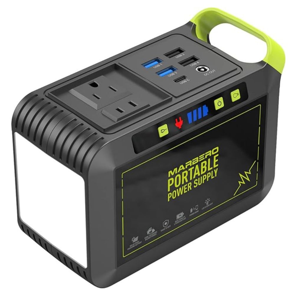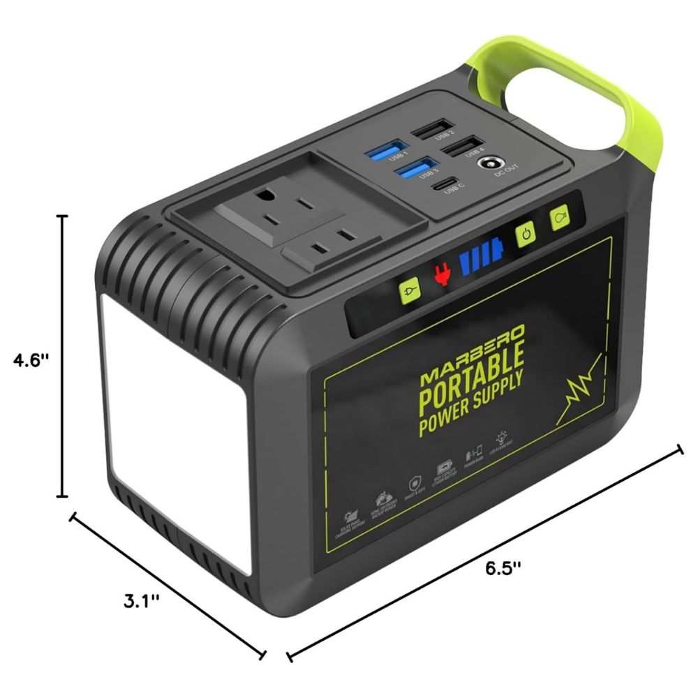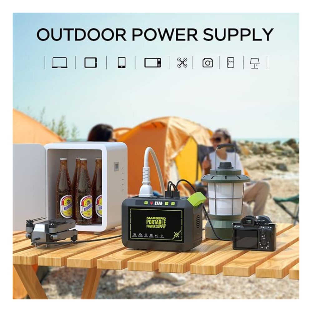 ¡Energía esencial donde sea que la necesites, sin el peso de un generador grande! La estación de energía portátil Marbero de 88Wh es la solución definitiva para mantener tus dispositivos vitales cargados. Con un peso de menos de 1 kg, ofrece una salida de CA de hasta 120W (pico), ideal para laptops, luces, ventiladores pequeños y drones.