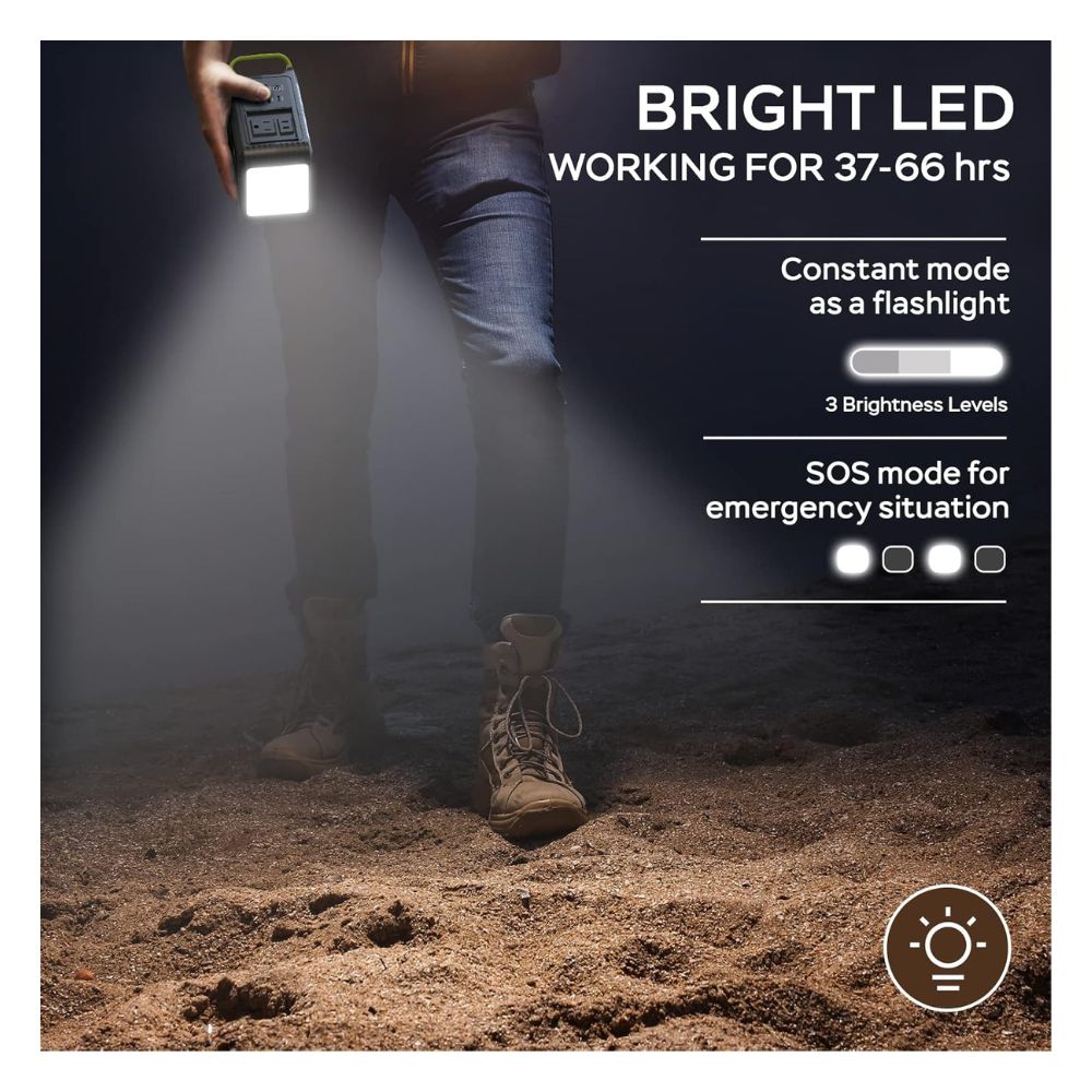 • Luces brillantes: Con tres niveles de brillo, el banco de energía portátil se puede utilizar como una linterna profesional cuando sea necesario, lo que es muy adecuado para su uso cuando el automóvil se daña, en cortes de energía en casa o una fuente de alimentación de tienda de campaña. El primer nivel se puede utilizar durante 68 horas (ilumina una habitación pequeña), el segundo nivel se puede utilizar durante 48 horas (iluminación para caminar por la noche), y el 3er nivel se puede utilizar durante 37 horas (ilumina la sala de estar). Tiene modo SOS, usa la frecuencia SOS internacional para obtener ayuda.
