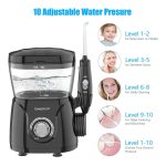- 🦷 Capacidad de 20.3 fl oz: el irrigador dental de agua con manguera flexible de 3.3 ft tiene una capacidad de 20.3 fl oz, que puede fluir continuamente durante 90 segundos, y puede limpiar toda la boca con un tanque de agua. Diseño preciso a prueba de fugas y antideslizante que puede garantizar que no se derrame líquido y reducir el ruido durante el uso.