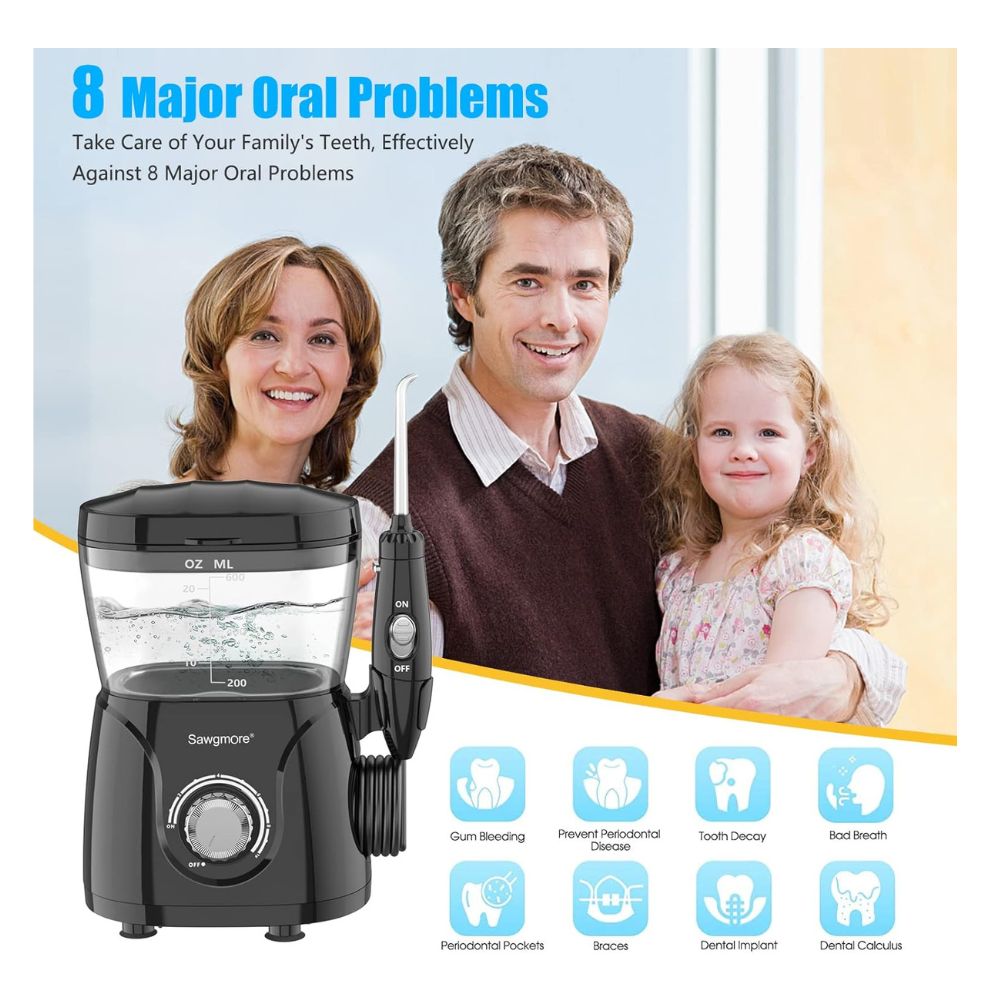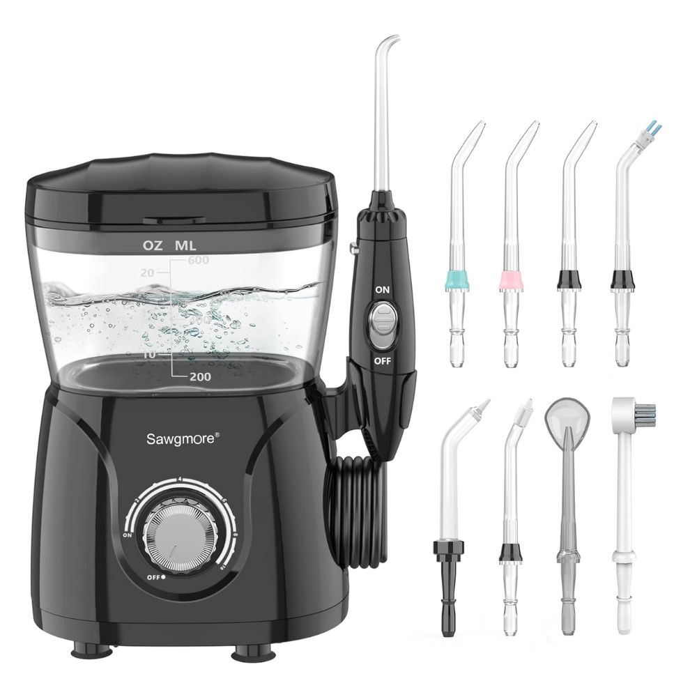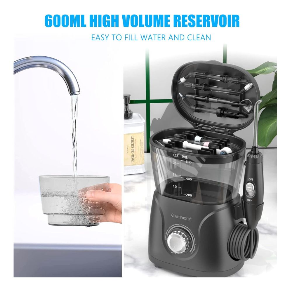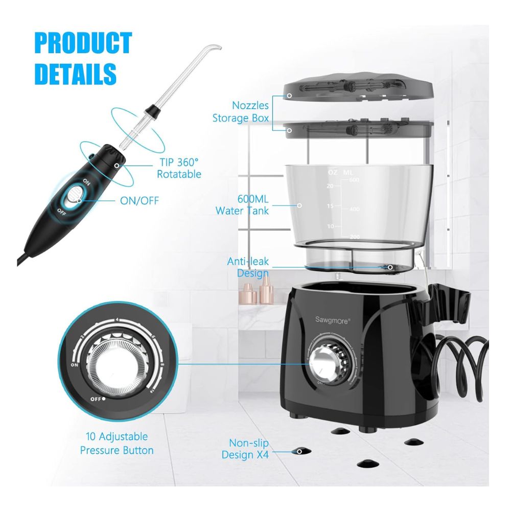 - 🦷 Eficaz: el irrigador dental de agua Sawgmore viene con pulsación de agua de 1250 a 1700 veces/min, que puede eliminar eficazmente los restos de comida entre los dientes, masajear eficazmente las encías, limpiar los dientes, prevenir el mal aliento y cuidar la boca de forma saludable.