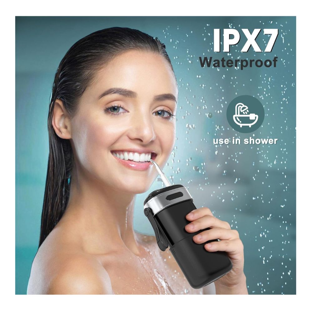 Diseño de bolsillo: Este exquisito y ligero irrigador bucal inalámbrico es tu mejor opción portátil (L: 9,6 cm, An: 8,9 cm). Está diseñado con un depósito de agua retráctil y una boquilla de almacenamiento integrada. En comparación con productos similares, su tamaño y peso son considerablemente menores (0,2 kg), lo que lo convierte en una excelente opción para cualquier situación y para artículos de aseo.