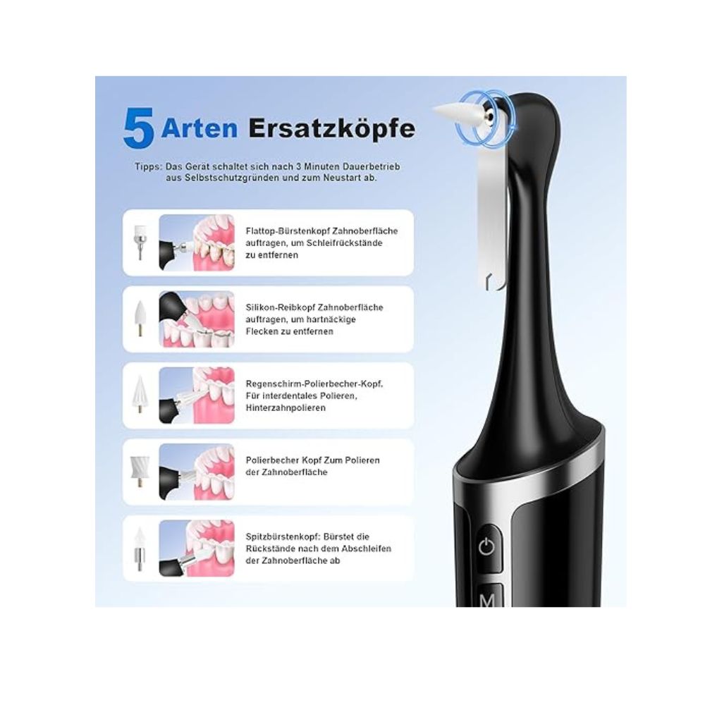 🦷✨ 5 cabezales de repuesto: El kit de blanqueamiento dental incluye 5 cabezales intercambiables para la limpieza y el blanqueamiento dental. Soluciona diversos problemas dentales. Su función principal consiste en limpiar y pulir los dientes para lograr un efecto blanqueador.