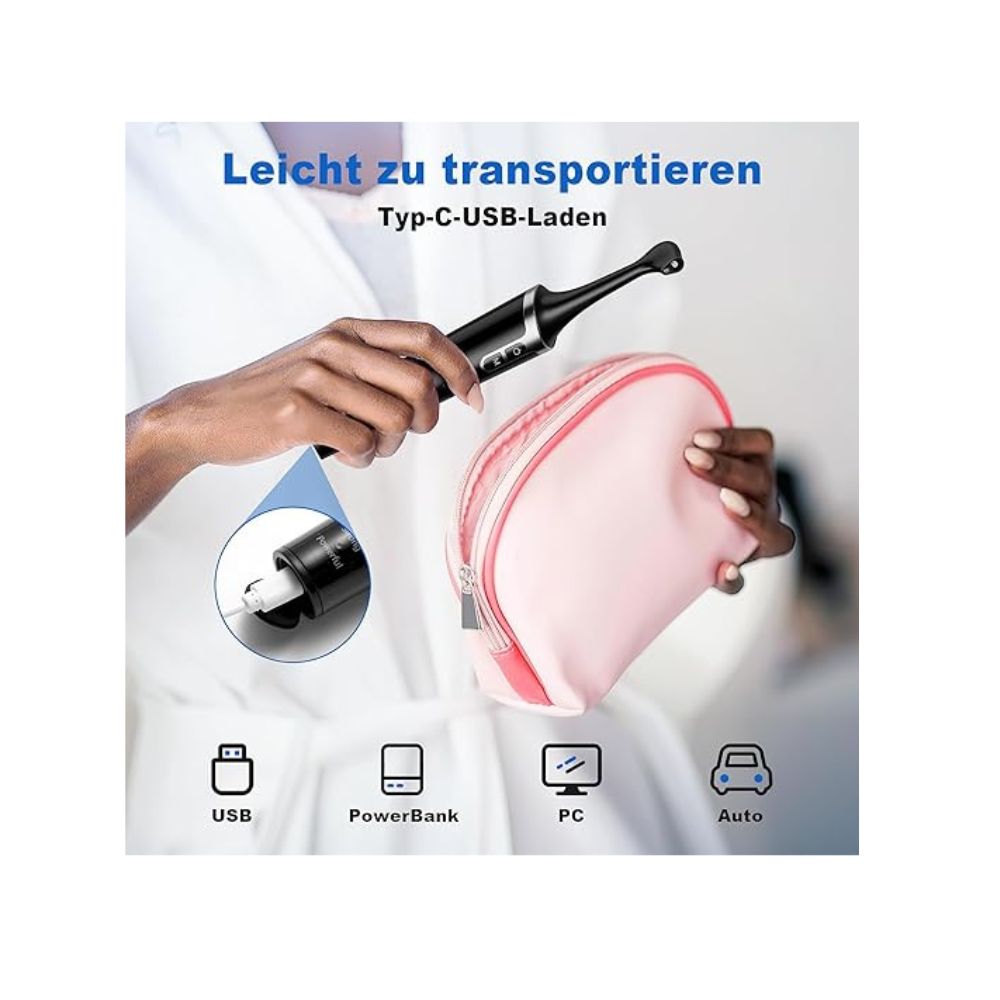 🦷✨ Carga tipo C y resistencia al agua IPX7: El pulidor de dientes eléctrico se carga mediante tipo C, lo que lo hace más cómodo y fácil de transportar. Se puede cargar con una batería externa y un PC. El puerto de carga se encuentra en la parte inferior. El dispositivo es resistente al agua IPX7, por lo que puede enjuagarlo con agua para su uso diario.