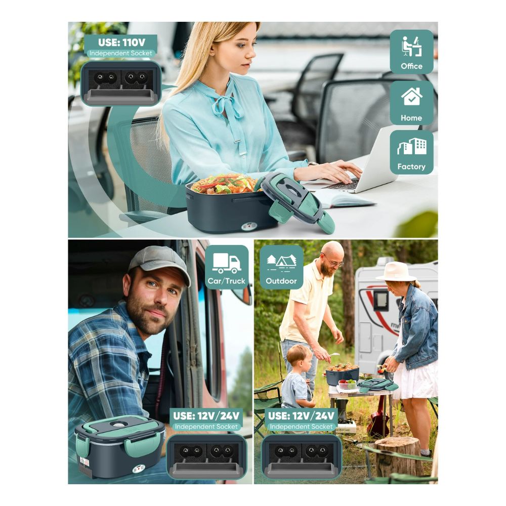 🍱 Llévalo a cualquier lugar disfruta de comidas caseras sobre la marcha con el calentador portátil de la lonchera de 110 V y el adaptador de coche/camión para enchufes de 12 V/24 V. Lleva esta lonchera con calentador de alimentos a cualquier lugar con la bolsa de transporte aislada, perfecta para el trabajo o aventuras al aire libre. Cable desmontable para un fácil almacenamiento.