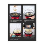 Diseño especial: el diseño de agujeros de ventilación puede evitar la acumulación de vapor o condensación en la tapa transparente, hace que las palomitas de maíz se mantengan crujientes. El diseño de asas de tacto fresco puede evitar quemaduras cuando inviertes la placa de estallido.