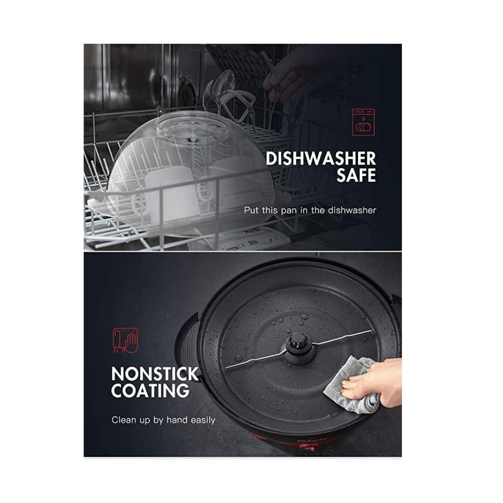 Extraíble y fácil de limpiar: placa antiadherente extraíble simplemente  limpiándola suavemente, la cubierta transparente 2 en 1 se puede utilizar como un tazón para servir, esa parte de todo es apta para lavavajillas, hace que la limpieza sea más fácil.