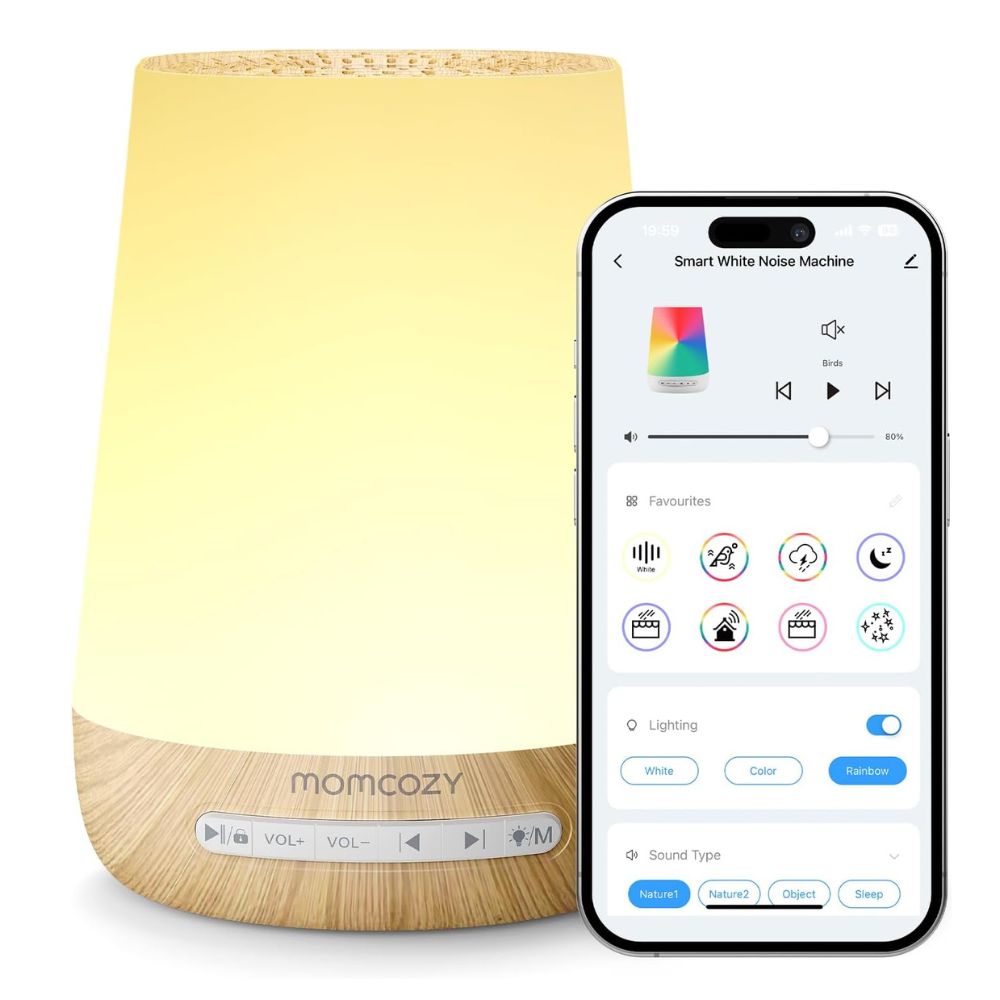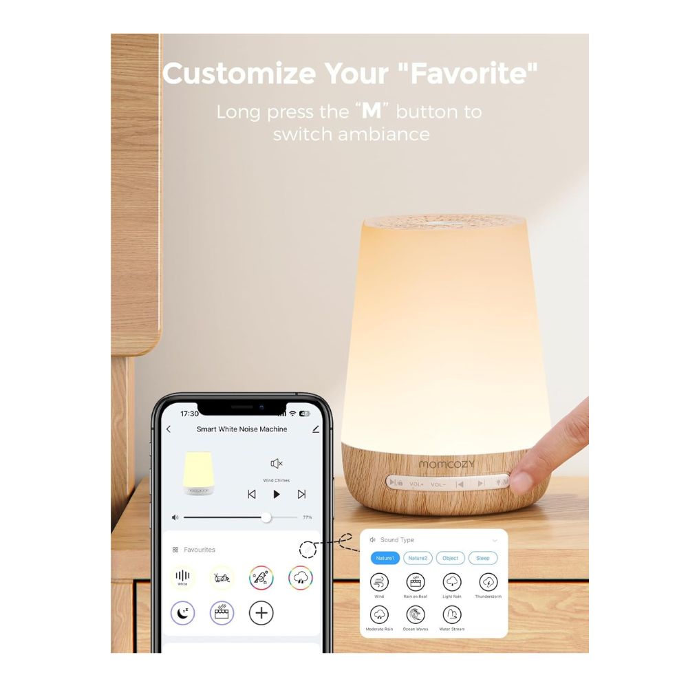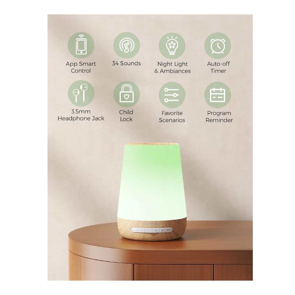 La máquina de sonidos para bebés Momcozy ofrece 34 sonidos cuidadosamente elaborados, que garantizan que todos encuentren su refugio relajante. Desde el suave zumbido del ruido blanco hasta las nanas de la naturaleza, cada sonido está diseñado para envolver a los usuarios en tranquilidad, convirtiendo el descanso en una experiencia rítmica.