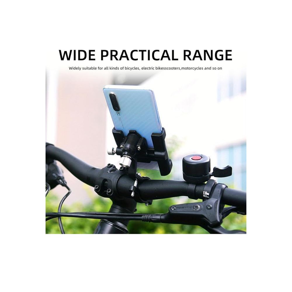 📱Más fuerte: material de aleación de aluminio, el soporte de metal para teléfono sujetará tu teléfono celular firmemente en la bicicleta.
