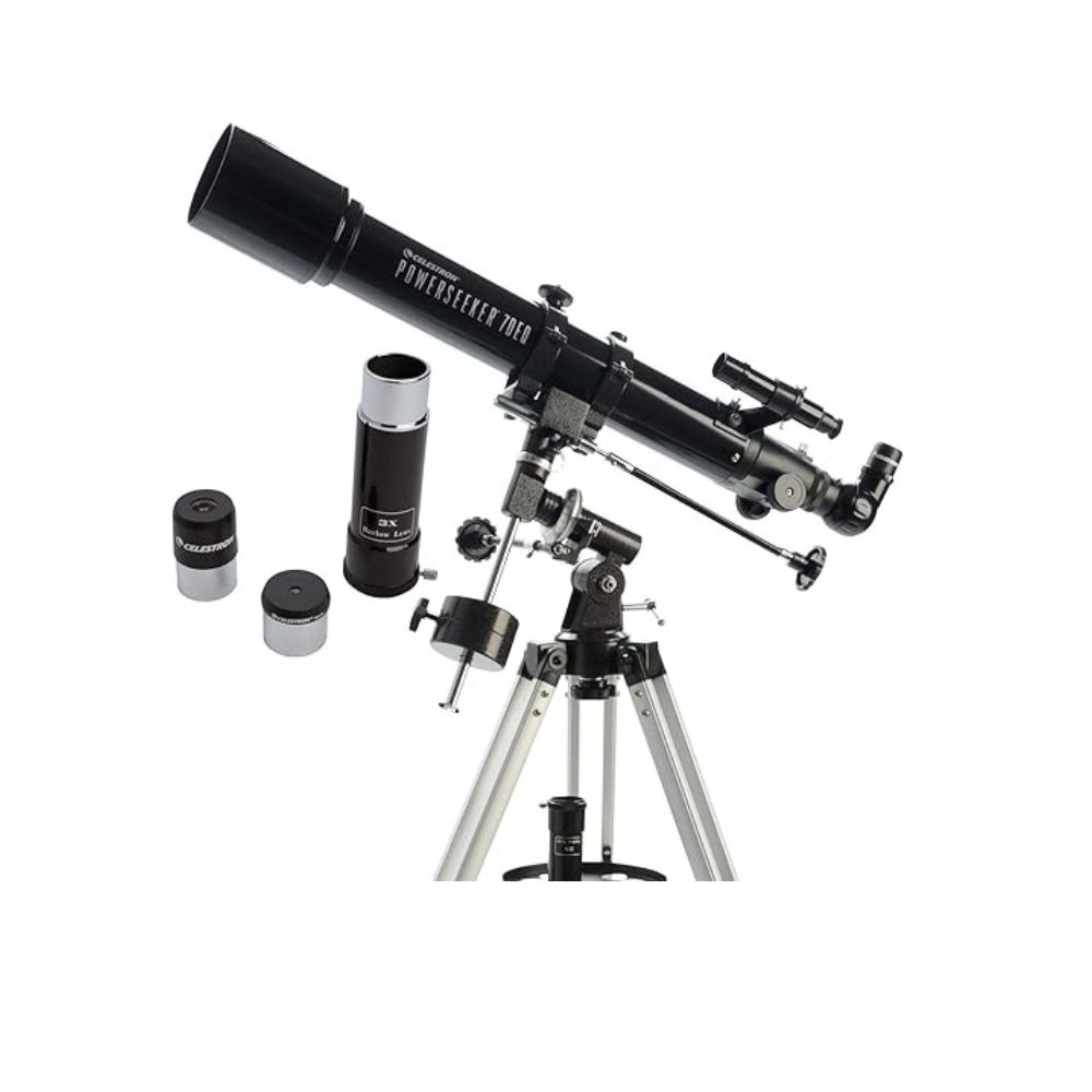 - Múltiples accesorios: el telescopio Celestron PowerSeeker 114EQ viene con 2 oculares de calidad (0.787 in y 0.157 in) más una lente Barlow 3x para triplicar la potencia de cada uno.