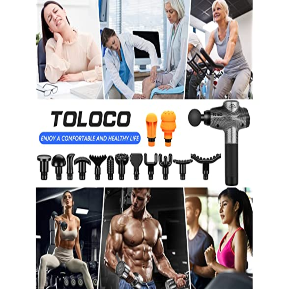 Inicio CUIDADO PERSONAL Masaje TOLOCO Pistola de masaje de tejido profundo, masaje muscular de percusión, eléctrico de mano para aliviar el dolor