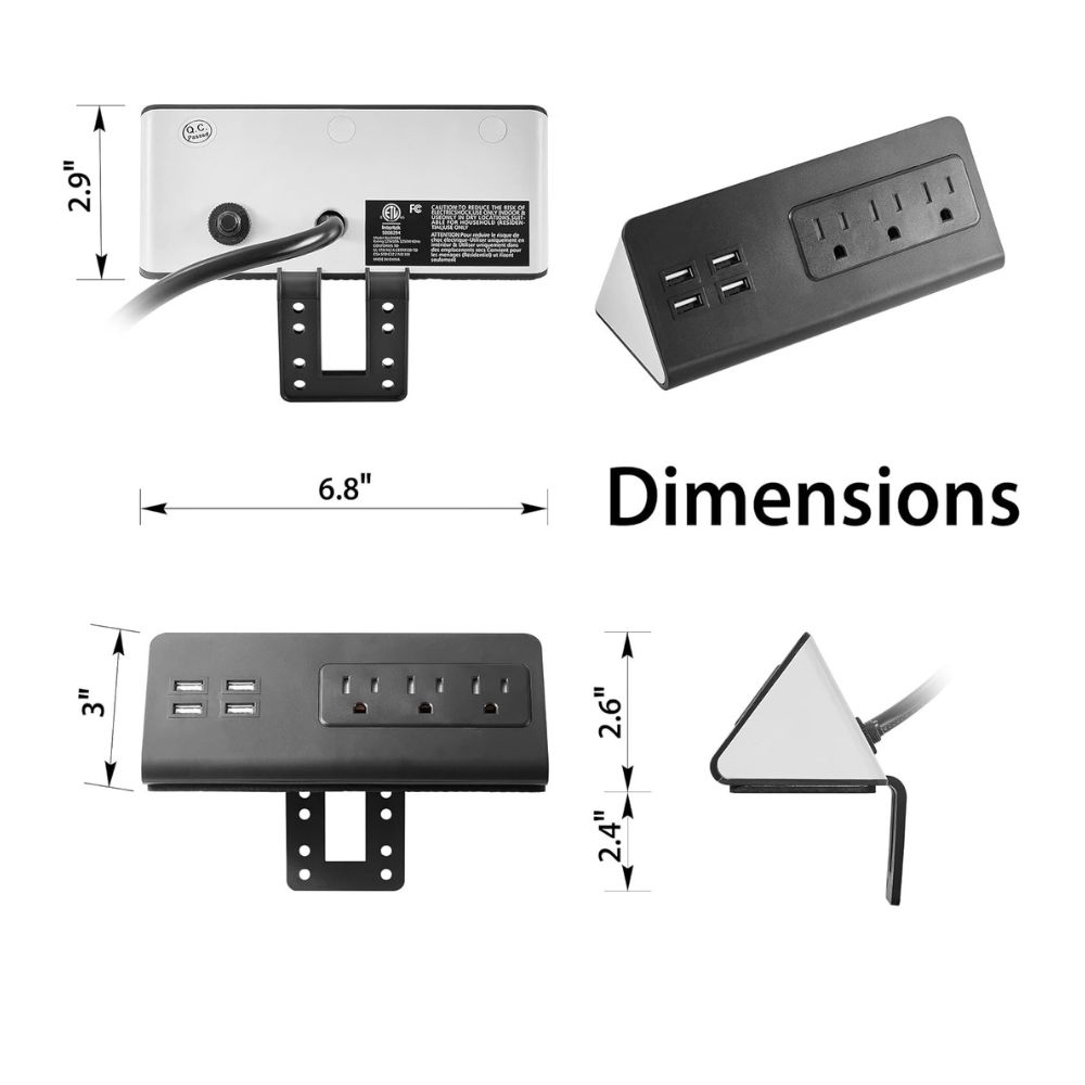 🔌 Montaje en el borde del escritorio, Cable de alimentación de cobre puro resistente con certificación UL, durabilidad y reduce el calor. El soporte de montaje asegura fácilmente el artículo a la mesa o muebles.