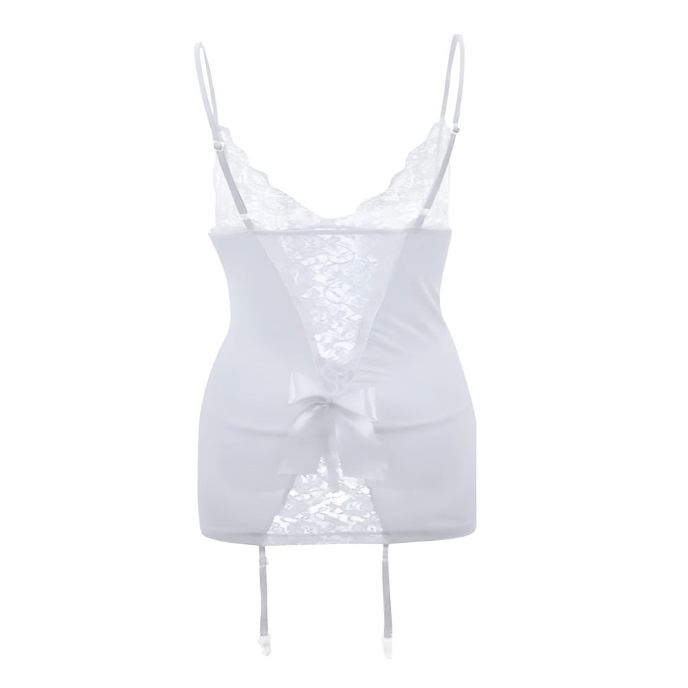 Inicio CUIDADO PERSONAL ADULTOS Lenceria X Babydoll blanco de encaje para mujer con liguero transparente