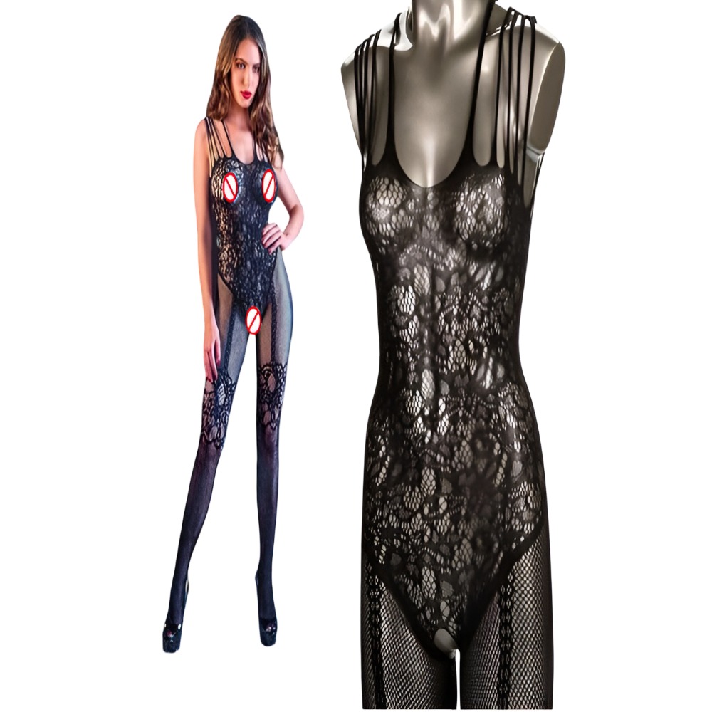 Inicio CUIDADO PERSONAL ADULTOS Lenceria X Bodystocking sexy para mujer malla abierta con detalles estampados y sujetadores para los hombros, entrepierna abierta