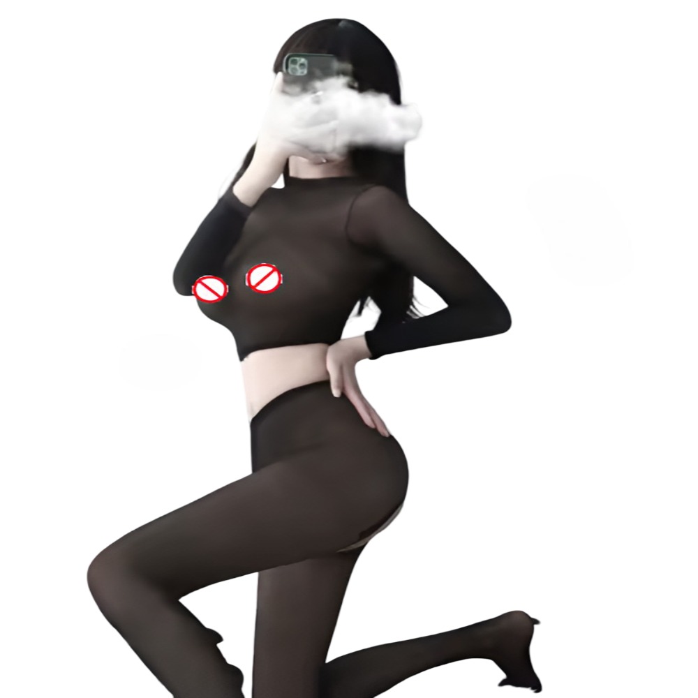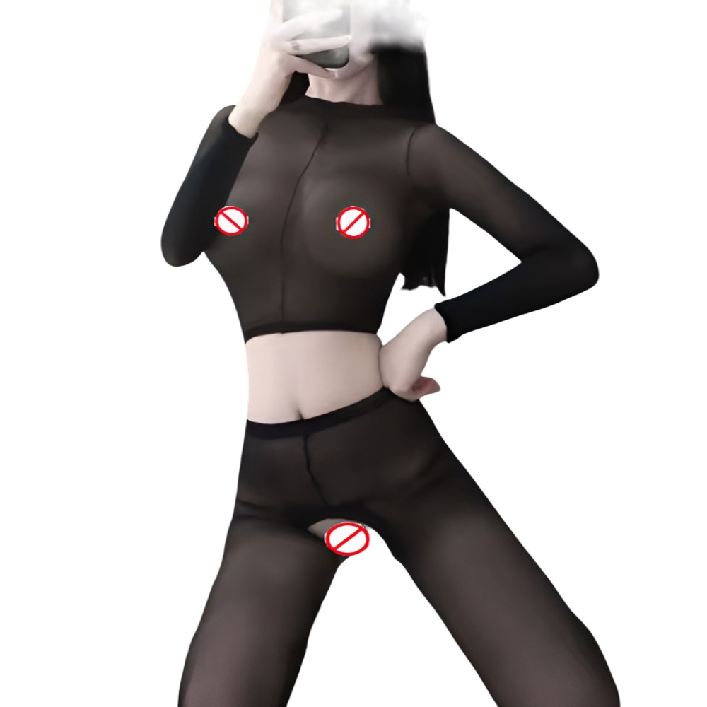 Inicio CUIDADO PERSONAL ADULTOS Lenceria X Bodystoking negro transparente de 2 partes manga larga