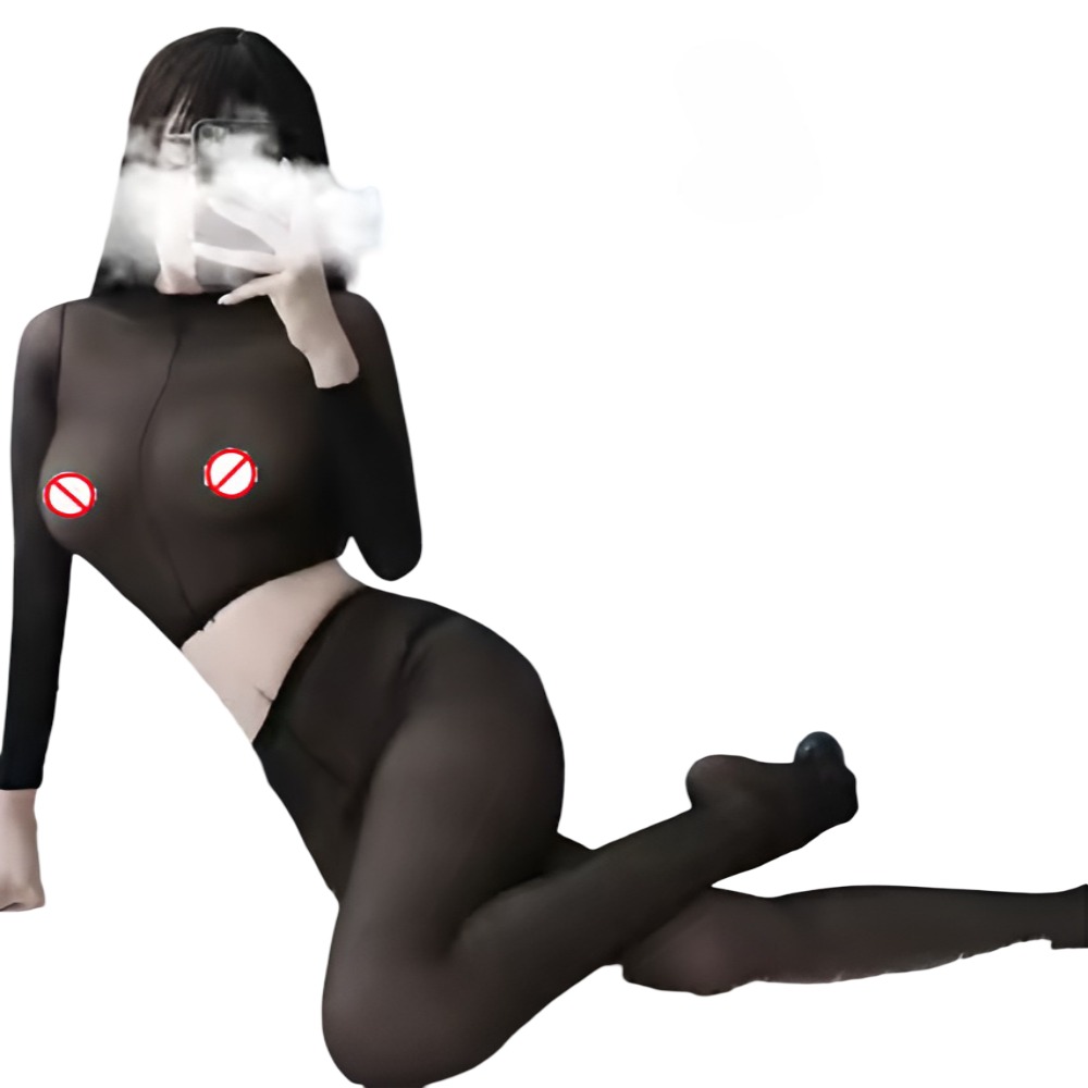 X Bodystocking transparente negra para mujer cuerpo entero.